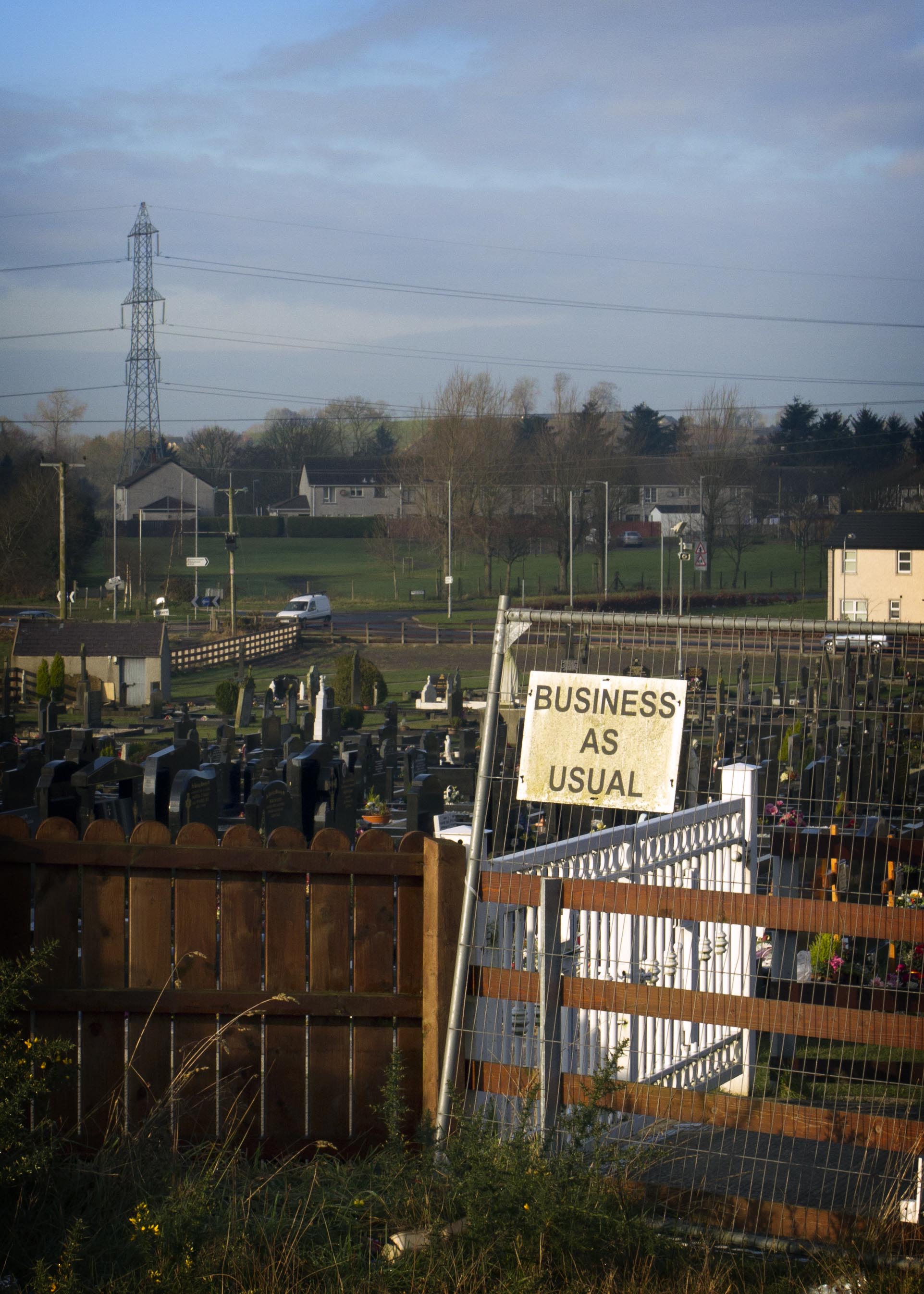 Business as Usual (Day Twenty Eight) Posted on January 29, 2012 by Oliver Corr Photography A sign at the gates of a local grave yard. “One thing about life, we are not getting out of it alive” Share this: Click to share on Facebook (Opens in new window) Facebook Click to share on X (Opens in new window) X More Click to email a link to a friend (Opens in new window) Email Like Loading... Related