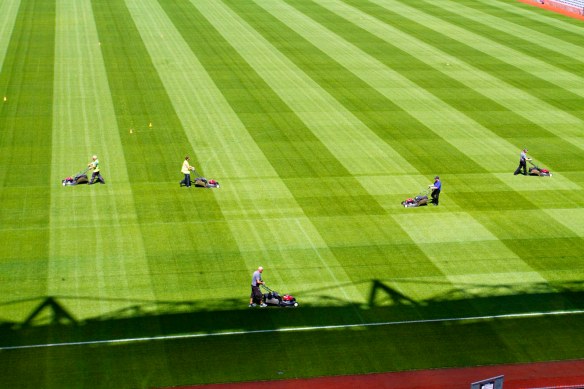 Day 199 Croke Park Pitch (Photo A Day 2012) Posted on July 18, 2012 by Oliver Corr Photography This is the ground staff at Croke Park getting the pitch ready for football again after a concert. What amazed me was that they used ordinary garden lawn mowers to get the stripe effect on the pitch. Share this: Click to share on Facebook (Opens in new window) Facebook Click to share on X (Opens in new window) X More Click to email a link to a friend (Opens in new window) Email Like Loading... Related