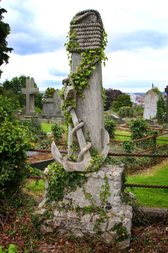 This is one of the many decorative headstones in Belfast City Cemetery. It belongs to Lucy Layton Hamilton who died on July 18th 1878 She was from Bangor and was only 16 when she died. The headstone is an anchor entangled in rope. The anchor became a key Christian symbol during the period of Roman persecution.