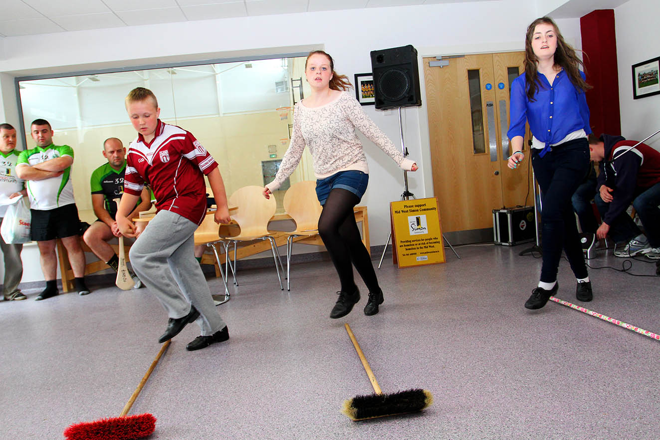 Three young dancers performing a “Broom Dance” in Doora Barefield Co Clare. is another traditional Irish dance form. There are many tales on how this dance form originated. One version is that men outnumbered women so the gents polished up their dancing skills at home with a broom as a partner. Once mastered, they’d go to their local dance gatherings to display their skills in hopes of garnering the ladies attention. Another version is that the Irish Tinkers/Pavees/Travelers would perform this “showy” dance to attract attention and make it easier to sell their wares, like brooms, tools and pots. This dance tradition has been handed down for more than a century & is very entertaining.