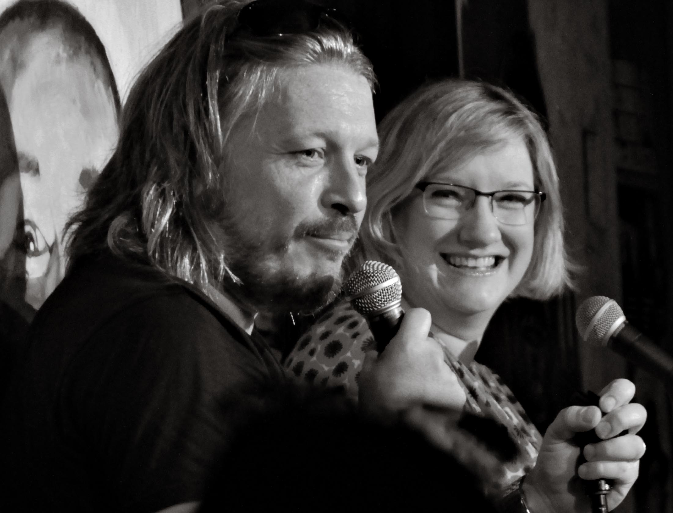 This is Richard Herring and Sarah Millican during a show at the Edinburgh Fringe Festival. Richard Herring has been performing at the Edinburgh Festival for the last twenty five years. He is comedian and writer, whose early work includes his involvement in the double-act, Lee and Herring with Stuart Lee. He had a regular podcast with writer Andrew Collings until recently and has a daily podcast from the festival recorded at the Stand Comedy Club. Sarah Millican won the best newcomer award at the festival in 2008 and has gone on to have her own TV show on BBC which has been commissioned for a second series.
