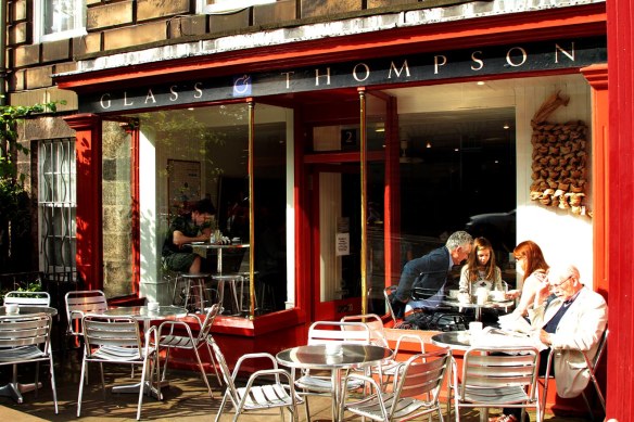This is Glass and Thompson deli at 2 Dundas Street Edinburgh. It is in Glass and Thompson where Domenica McDonald embarrasses Pat MacGregor by inviting a handsome waiter around for tea to discuss the poetry of Rupert Brooke in Espresso Tales . Apparently if you ask the proprietor Russell Glass nicely he might show you the copy of Alexander McCall Smith’s novel The Forgotten Affairs of Youth he keeps behind the counter, the one in which Russell himself and his café make a cameo appearance on page 173.