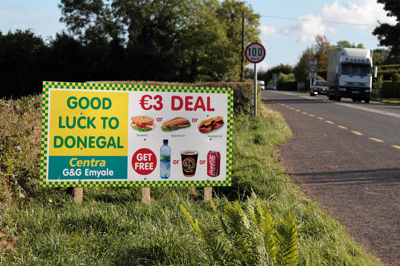 This sign is on the side of the road just outside the village of Emyvale Co Monaghan. I’d say most supporters from Ulster will get behind Donegal as the representatives of the province. I have mixed feelings about it. Firstly I have a natural (and sometimes illogical!) inclination to get behind the underdog and in this case Mayo are the less favoured of the two teams going into this years All Ireland Football final. Secondly I have an uncle by marriage, Dr John McAndrew who played on the last Mayo team to win an All Ireland back in 1951. John is in his 80’s now and has lived most of his life in Birmingham but is unable to attend the game on Sunday. He will however be represented by his son Sean and grandson Finbar. So for these reasons it is Maigh Eo Abú!!