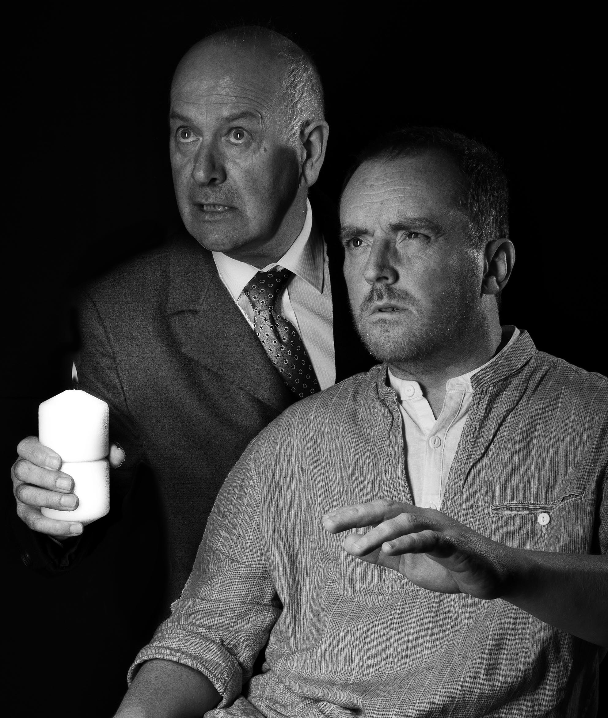 Actors Micky Carolan and Jim McKeown in a scene from “Banshee” A Women In Black which is currently in rehearsal at The Craic Theatre Coalisland. It opens on Thursday October 25th and will run for eight nights 25th-28th Oct and 1st – 4th November @ 8pm nightly. It’s a revival of a show that we first produced twelve years ago (where have the years gone?) This production will be directed by Shane O’Neill with lighting design by Damian Ryan both of whom make a very welcome return to the Craic Theatre after an absents of too many years. It’s the ideal scary show for Halloween.