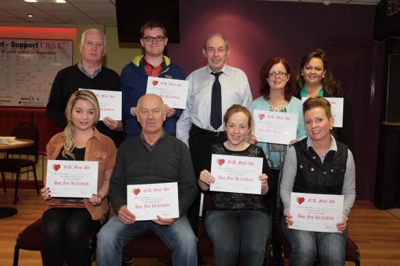 These are my colleagues from the Craic Theatre Coalisland who have just completed a basic first aid course under the very experienced eye of John Pat O’Donnell from Coalisland Order of Malta. I feel very safe now! Well done to Brian, Seanan,Alice, Collette, Sarah Jane, Micky, Bronagh and Colleen.